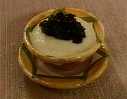 3 - Para montar use pequenos potes, colheres, o que tiver em casa. A idéia são pequenas porções. Primeiro a cocada, depois a cobertura de ameixas. Deixe esfriar bem antes de servir, mas não é necessário levar para a geladeira.