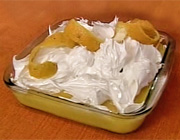 7 - Arrume o merengue em cima do creme de laranja que estava na geladeira e sirva.
